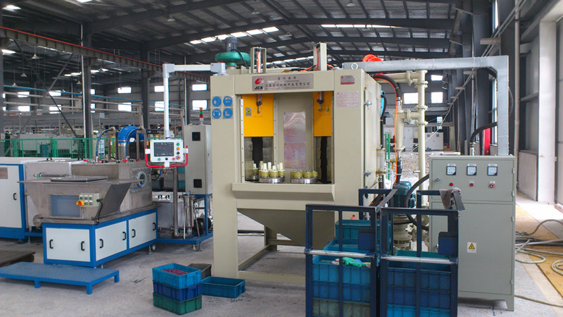 蝸輪軸是高端汽車傳動部門的主要零部件,由于高強度的要求,蝸輪軸需要經(jīng)過熱處理加工,經(jīng)過熱處理加工之后,表面產(chǎn)生一層氧化層,濕式噴砂機就是目前清理的最優(yōu)質(zhì)方案。 本設(shè)備是根據(jù)我公司針對蝸輪軸類產(chǎn)品和處理要求而專門設(shè)計的全自動轉(zhuǎn)盤式濕式噴砂機,完全適合貴公司所提供的產(chǎn)品要求。根據(jù)貴公司對產(chǎn)品質(zhì)量及效率的要求,本機共設(shè)置8個工件裝夾位。大轉(zhuǎn)盤每轉(zhuǎn)動2個工位一停,噴砂艙內(nèi)共布置8支普壓高速噴砂槍,在噴砂區(qū)共設(shè)置2個工位做為噴砂加工位,即有2個工件在進行噴砂加工,布置8支噴砂槍對工件需噴砂部位噴砂加工。噴槍可根據(jù)加工需要,隨意調(diào)整其噴射角度,并配有噴槍組前后距離調(diào)節(jié)機構(gòu),采用PLC程序化控制,配觸摸屏操控面板,自動化程度非常高。 該機由主機、收砂器、水霧分離器、溢流沉淀箱、手動砂水檢測器、空氣壓縮系統(tǒng)(客戶自備)、電氣系統(tǒng)等組成。本機共配置8支普壓高速噴砂槍,加工靈活方便實用;